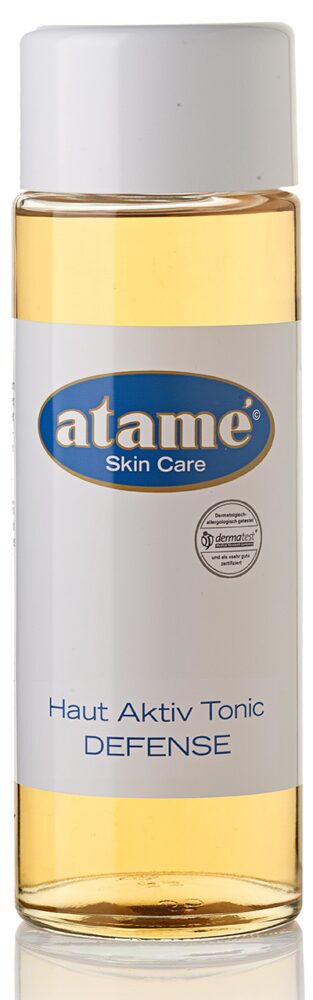 Atamé Haut Aktiv Tonic Defence bevat actieve ingrediëntencomplexen op plantaardige basis en geven uw huid een intensief verzorgd uiterlijk. Speciaal voor een huid die geïrriteerd is of snel een overreactie vertoond door externe en schadelijke invloeden van buitenaf kan vanaf nu opgelucht ademhalen: de Atamé Haut Aktiv Tonic Defense (voorheenANTI-MYKO skin active tonic FORTE) reinigt de huid tot in de poriën en verwijdert op milde wijze dode huidcellen en talgafzettingen. Het bijzondere: de tonic kan ook op ontstoken plekken worden gebruikt!