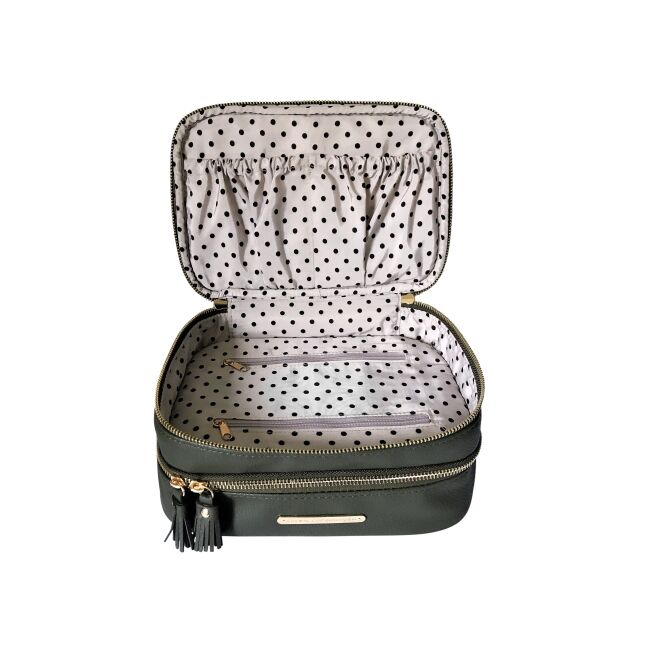 Luxe afgewerkte en duurzame beautycase met voldoende ruimte en vakjes.