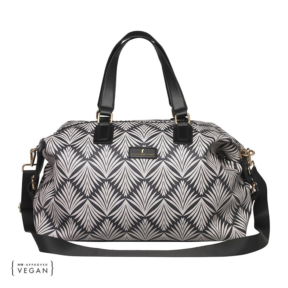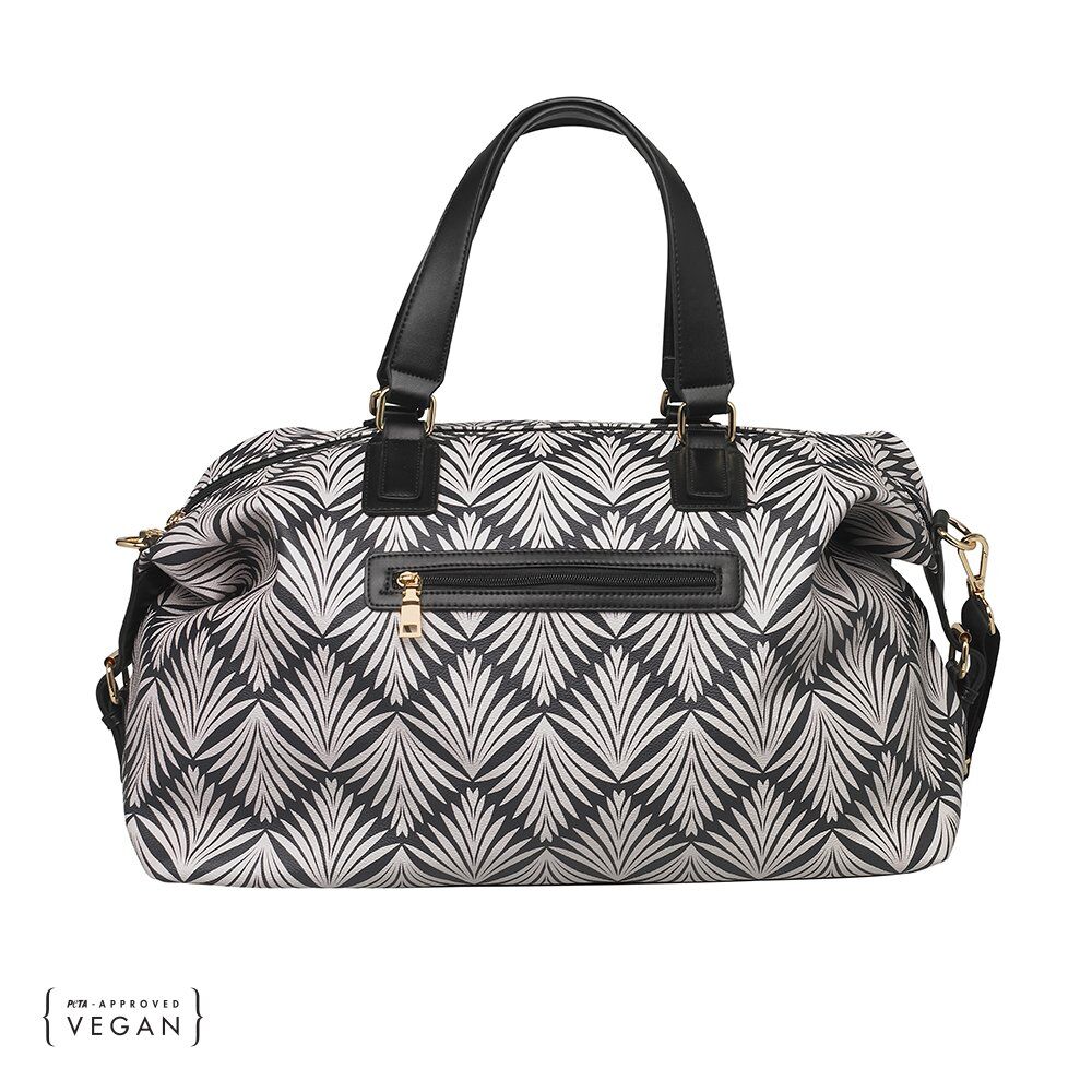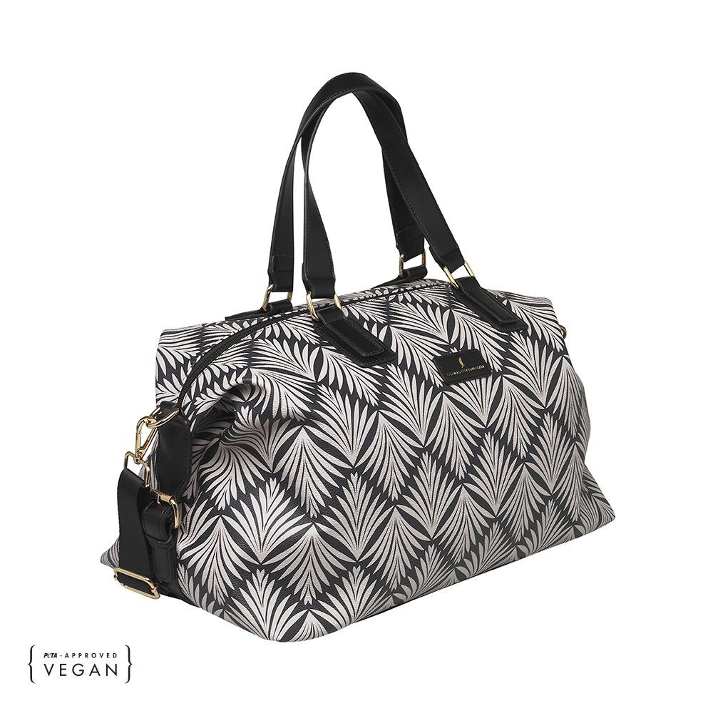 Reizen doe je in stijl met Dinah. De ruime weekendtas met het ideale formaat voor een weekendje weg, een vakantie of mee te nemen naar de gym. Draag de tas langs het lichaam, over de schouder voor een handsfree stijl (schouderband is afneembaar) of houd ‘m simpelweg in je hand met de hengsels aan de bovenkant. Als je met een koffer reist, kun je de tas makkelijk aan de handvatten hangen. Deze ruime weekender is ongelooflijk praktisch en heeft een trendy design. De binnenkant is afgewerkt in robuust polyester. Er zijn twee steekzakken aan de binnenkant en een binnenzak met ritssluiting en een buitenvak met rits.
