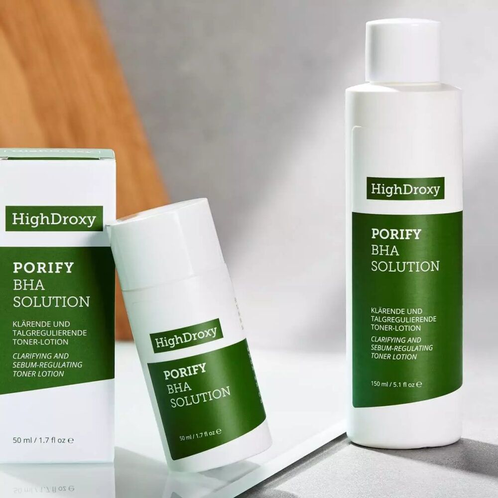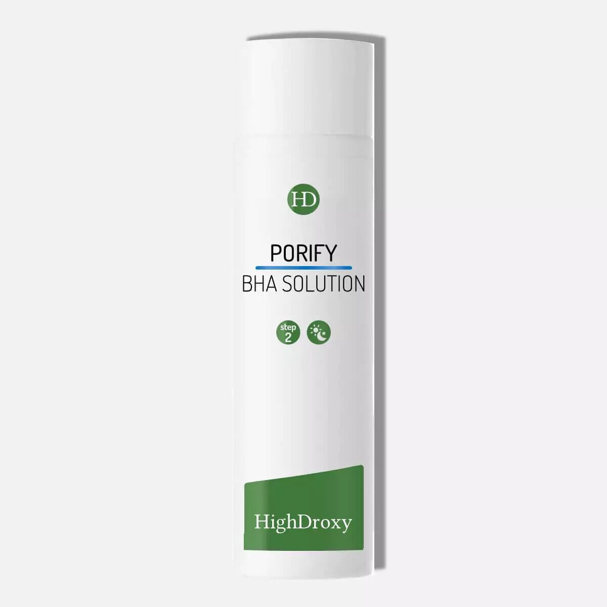 Wil je een onzuivere huid aanpakken, dan kan je niet zonder een goede exfoliant met salicylzuur oftewel BHA. Highdroxy Porify BHA-Solution bevat nu 2% salicylzuur in een speciaal opgeloste vorm. Hierdoor werkt het effectief, maar huidvriendelijke en laat het de pH-waarde intact. Salicylzuur reinigt de poriën, vermindert onzuiverheden en verwijdert voorzichtig dode huidcellen. Een complex van ingekapselde mastiekhars en wilgenroos vermindert de talgproductie. Niacinamide helpt de huidtint te egaliseren. Hyaluronzuur en komkommerextract zorgen voor de hydratatie van de huid.