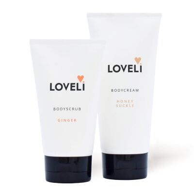 Je lichaamshuid verzorgen is niet alleen goed, maar ook fijn. Met deze set van Loveli, de Bodyscrub Ginger (150 ml) en Bodycream Honeysuckle (200 ml) wordt bodycare een echt me-time momentje.