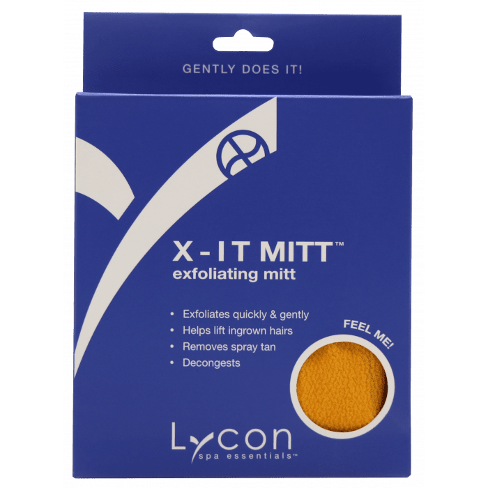 De X-IT MITT van LYCON is een effectieve scrub handschoen die de lichaamshuid op een zachte wijze ontdoet van dode huidcellen, zonder te irriteren. Ingegroeide haartjes worden losgemaakt, de doorbloeding van de huid wordt verbeterd en de celvernieuwing wordt gestimuleerd.
