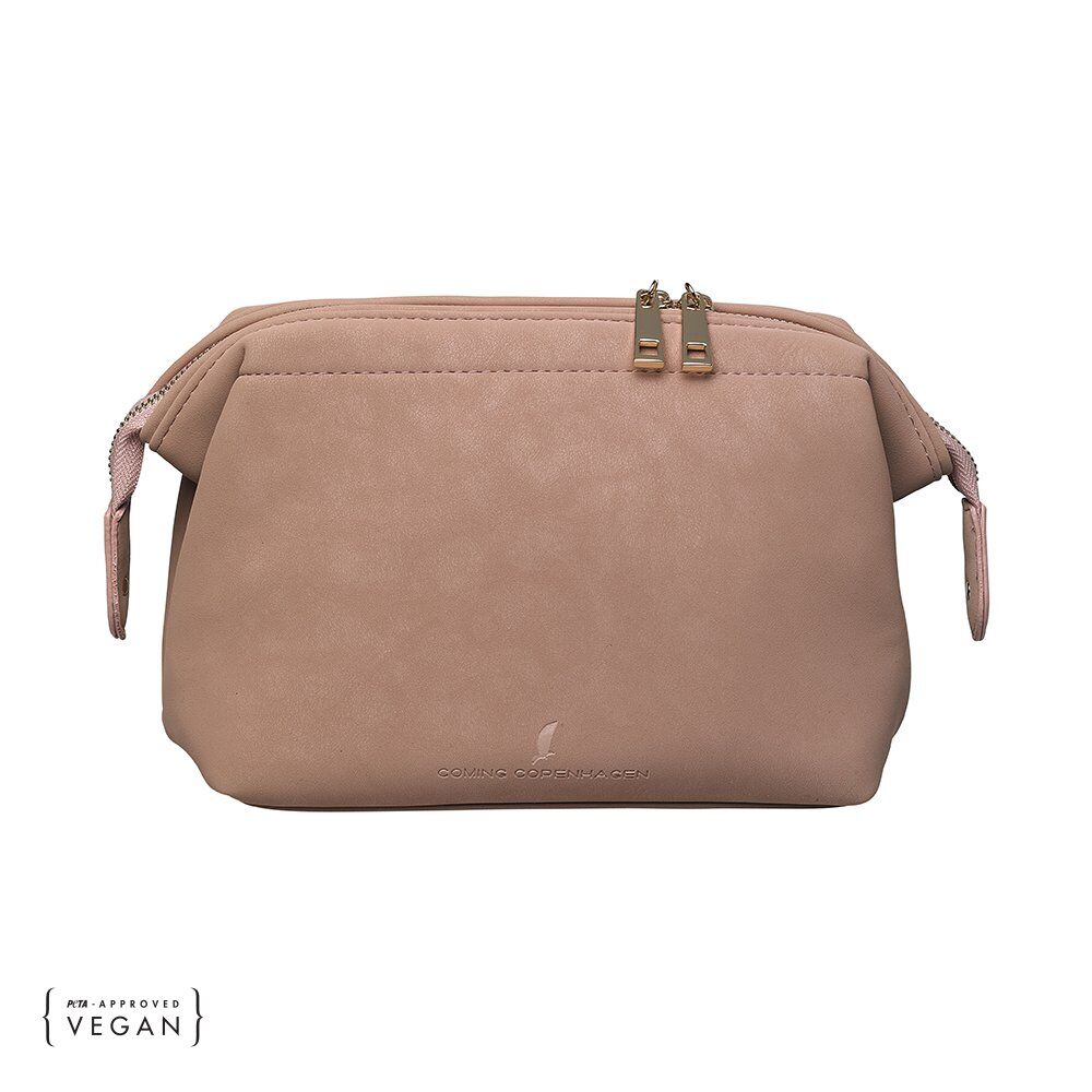 Laat je verrassen door door deze toilettas van Coming Copenhagen! Mia toilettas is gemaakt van hoogwaardig vegan suède. Aan de buitenkant ziet de tas er degelijk en luxe uit. De binnenzijde is net zo fraai: bekleed met een mooie grijskleurig stof met goudenkleurige stippen. De binnenzijde heeft een handige indeling met vakjes en zelfs een vak met ritssluiting. Opberg mogelijkheden genoeg dus om al je favorieten een mooi plekje te geven. Door het frame kan de tas uitzetten wanneer deze wordt geopend. Dit is superhandig omdat je dan veel meer overzicht in je toilettas hebt. Zo ben je nooit meer iets kwijt!