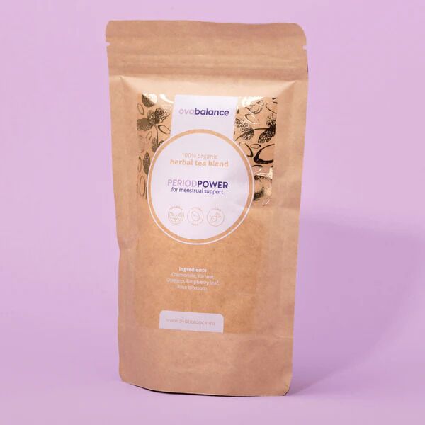 De Ovabalance Period Power Tea is een kruidenthee. Het bevat verschillende soorten kruiden en is bedoeld om je te ondersteunen vóór of tijdens je menstruatie.
