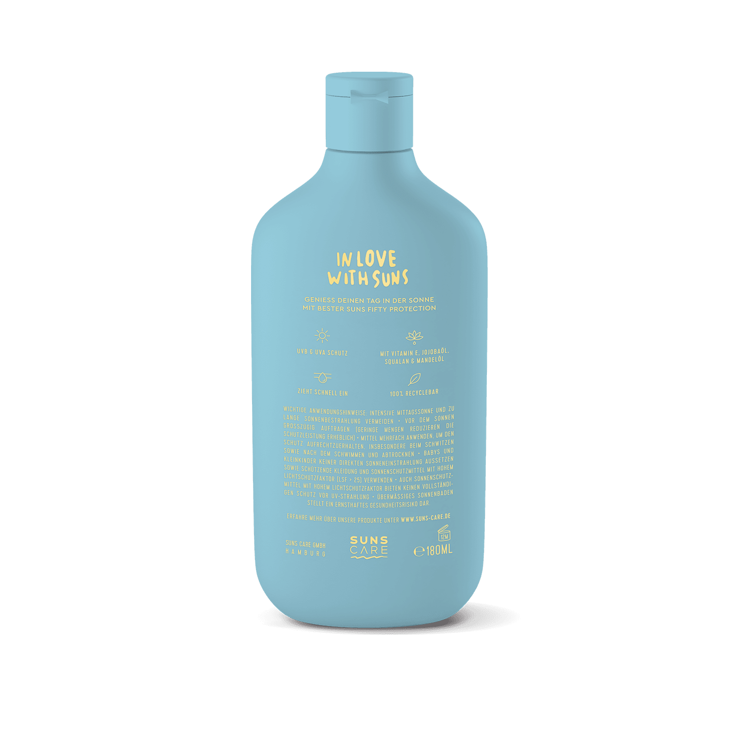 Suns Care Classic met SPF 50 geeft volledige bescherming tegen schadelijke effecten van zonlicht en verzorgt je huid zonder witte waas achter te laten. Deze snel intrekkende lotion biedt een hoge UVA/UVB breedspectrumbescherming dankzij evenwichtig samengestelde UV-filters. Het bevat een hoogwaardige combinatie van verzorgende ingrediënten, waaronder squalaan, vitamine E, jojoba- en amandelolie, die de huid voorzien van vitamines, hydrateren en de huideigen beschermende barrière versterken. Bovendien bindt deze zonbeschermende lotion bescherming tegen UV-gerelateerde vrije radicalen, waardoor je huid wordt beschermd tegen schade door de zon.