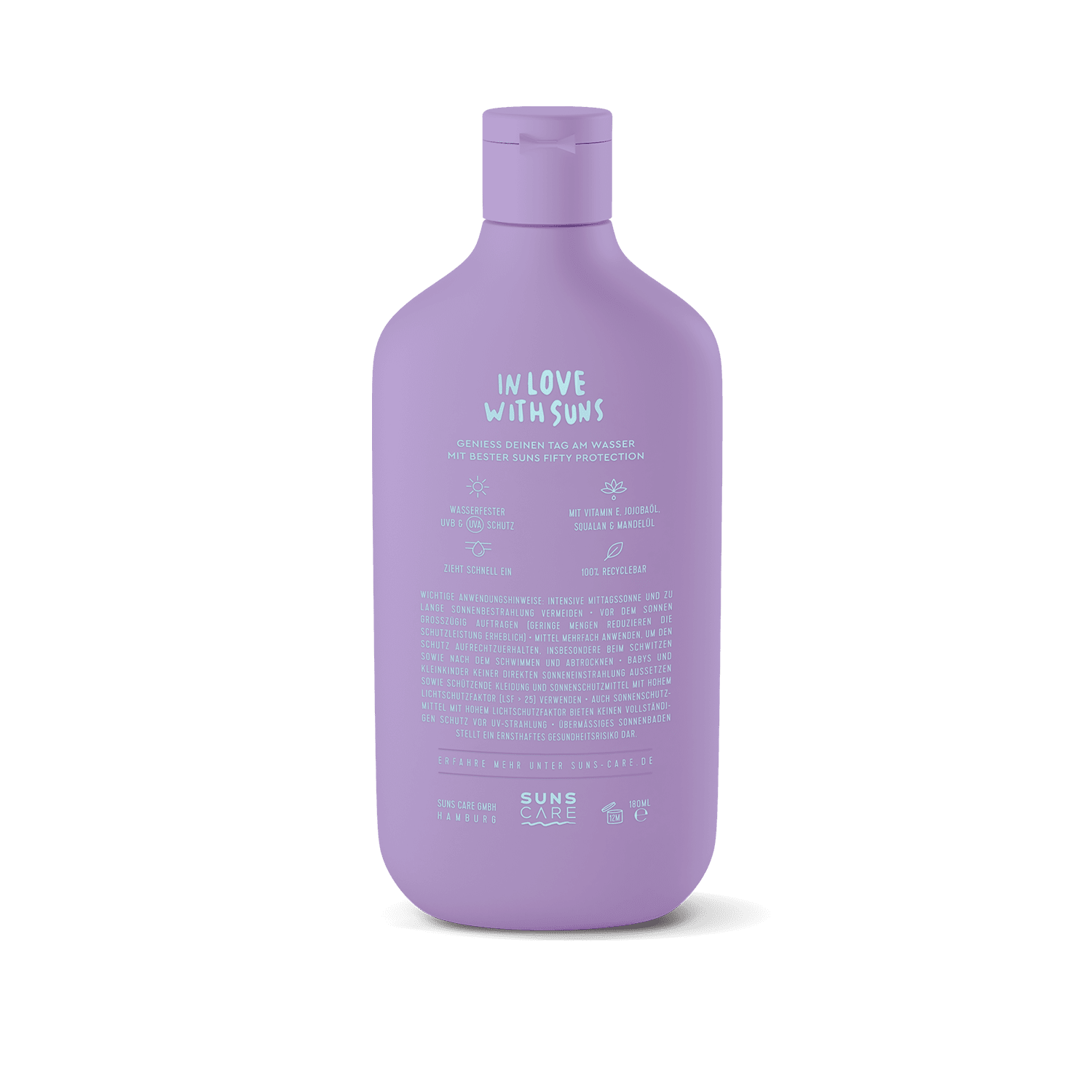 Geniet van de voordelen van deze reisvriendelijke lotion in een handig reisverpakking van 90 ml of voor het hele gezin in een 180 ml fromaat. Bescherm en verzorg je huid, waar je ook bent, met Suns Fifty Waterproof SPF 50 lotion.
